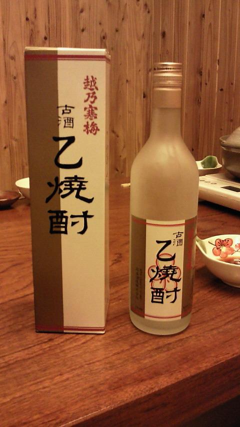 「お宅ら、これ飲んだことも見たこともないやろ」と出てきたのが、なんと「越乃寒梅の焼酎」古酒とかでアルコール40度。