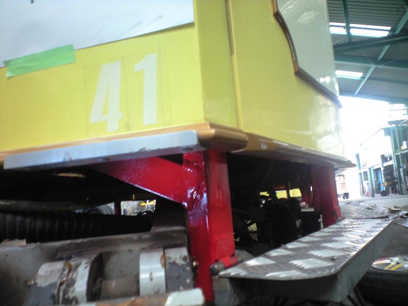 今回の、整備の中で、乗車用のステップのステー亀裂損傷の修理がありました。