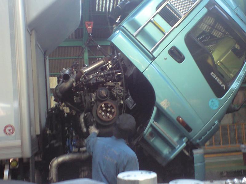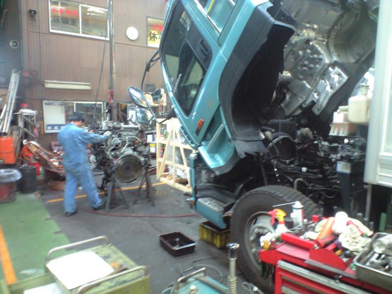 毎度、神戸いすゞ(近畿いすゞ)様からのお仕事、今回は、大型車のエンジン載替え。