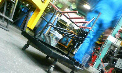 日曜出勤を利用して、小型ラインの床塗り、リフトの塗装を実施しました。リフトは、3本中、2本(青色)を黄色と水色に塗装しました。明るい感じになりました。