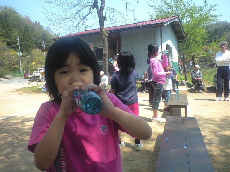 写真は、昔懐かしいラムネのみ競争(おっさんの部に参加した私は、15人中2位でした)