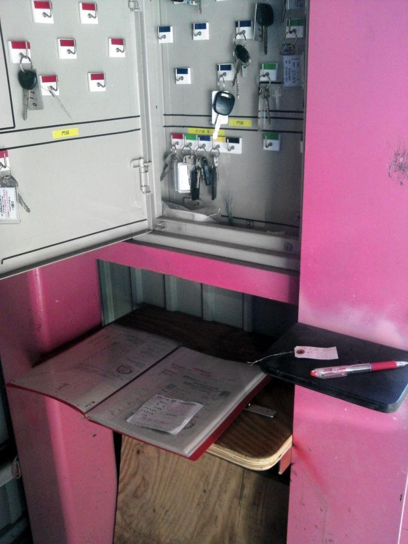 写真のようにアクティオさんのファイルを広げて車番確認、