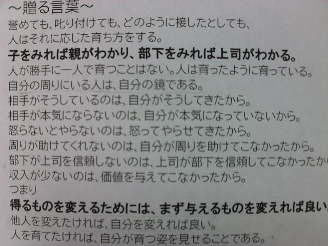 貴重な時間を使ってあまり得意ではない勉強にいくのですから、ほんの少しでも良いから成果を持って帰ってほしい。少しでもでも良いのでその学んだことを実践してほしい。結果としていつかより良い人格形成につながること。これらを願ってやみません。