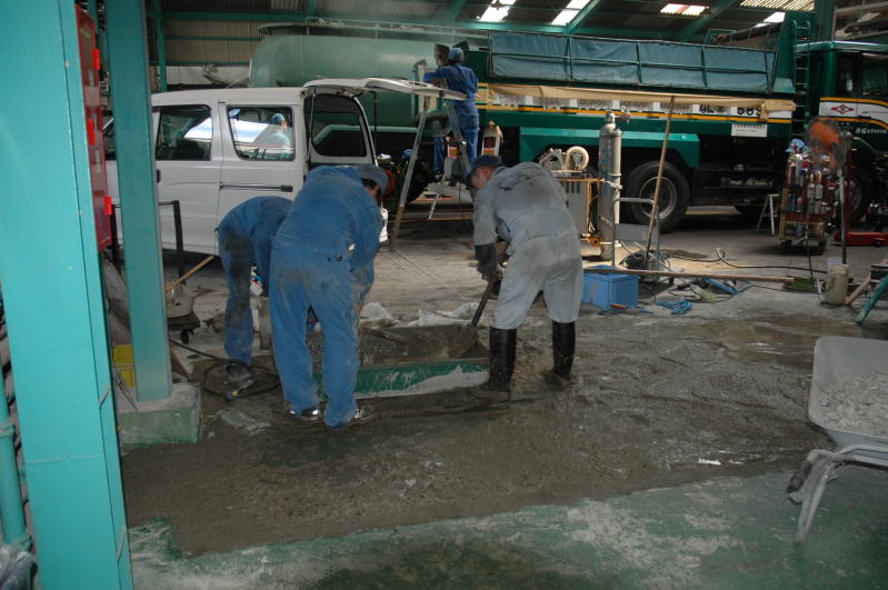 小型ラインと大型ライン間の土間段差を、生コン施工で改善してくれました。