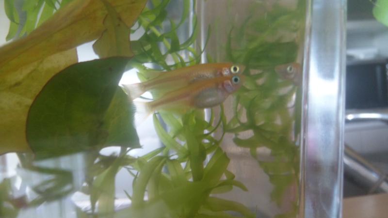 同時に虫ピンの半分ぐらいの稚魚が100匹ぐらい泳いでいました。
