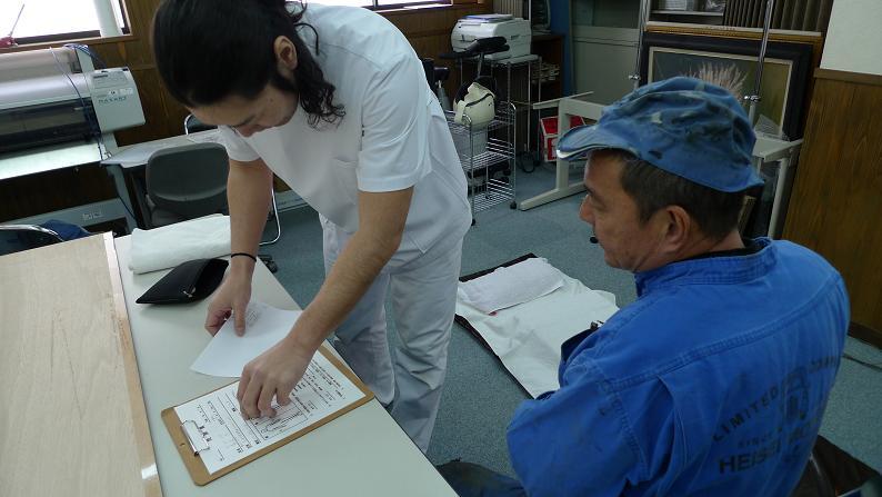写真:こころよく問診を受ける森永主任