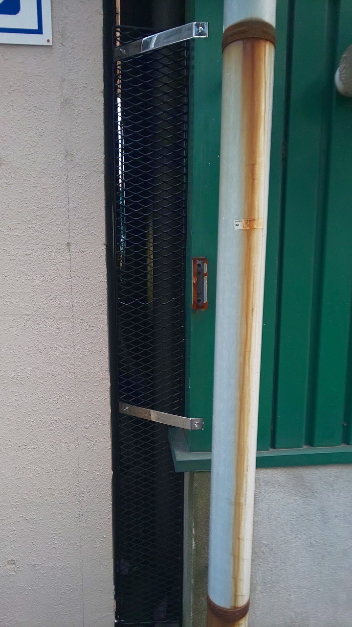 乗用車工場と隣のIRCさんの壁の隙間から猫が侵入するのを防ぐために網を制作設置しました。