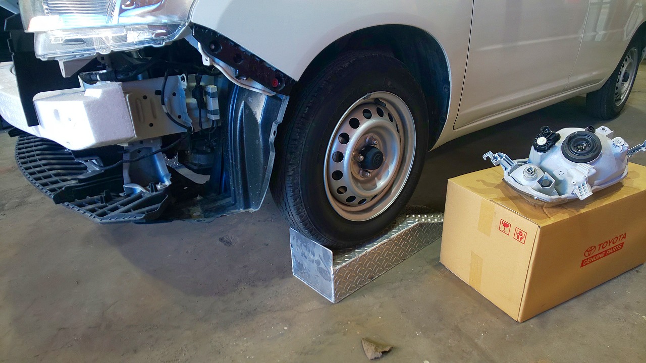 乗用車でフロントバンパーの取り付け、取り外しに便利なようにアルミ製で軽いスロープを制作しました、ジャッキが不要で便利です。