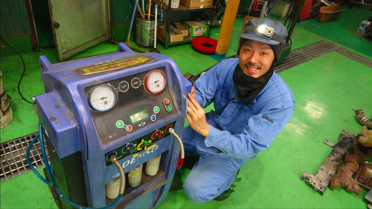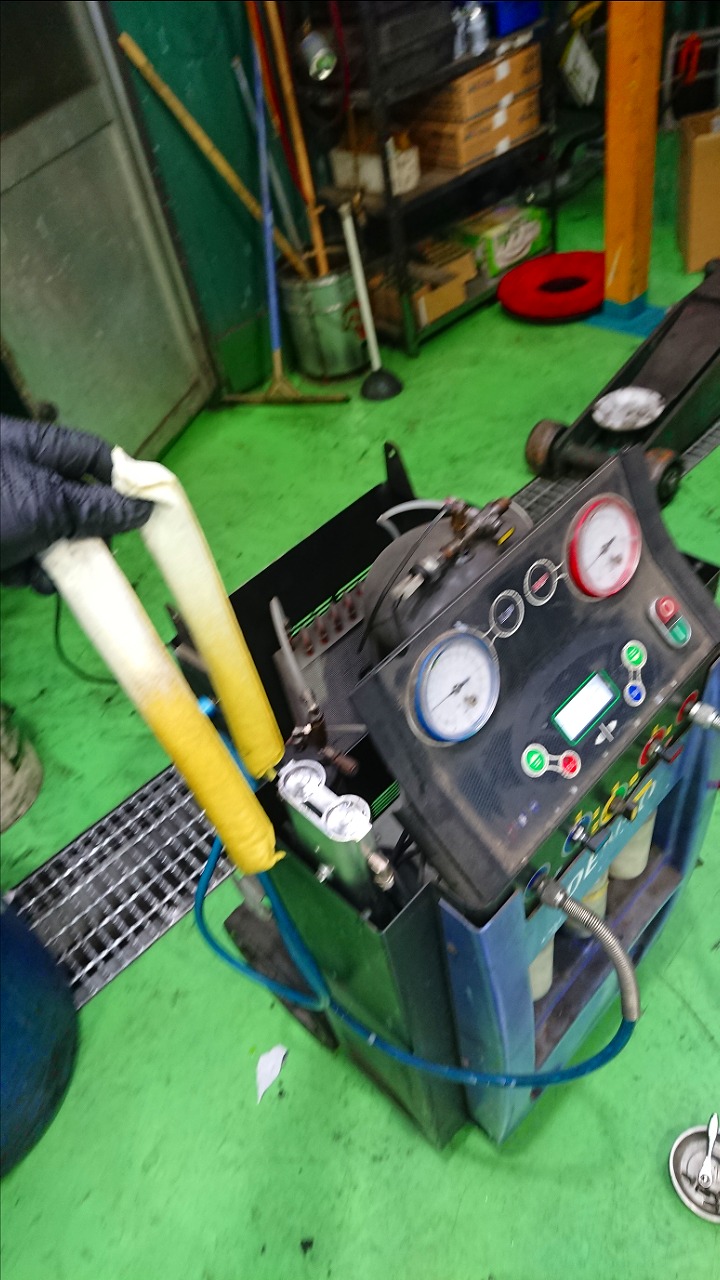 エアコン回収機のフィルター交換時期がきていて部品は手配したものの、なかなかほったからしになっていた作業を高ちゃん(高崎)がやってくれました。