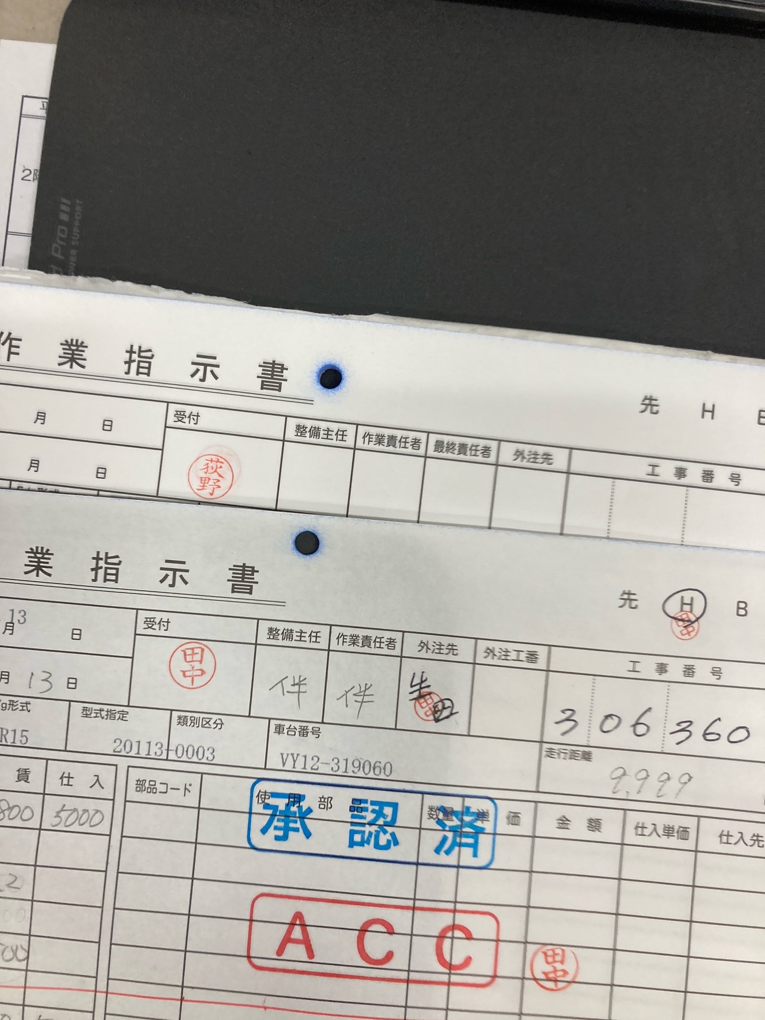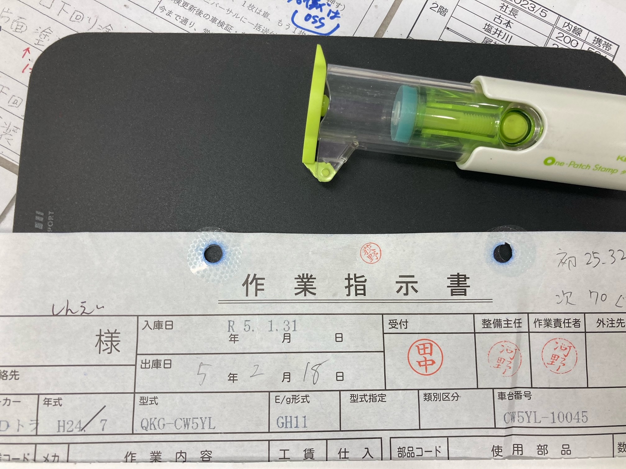 納品された新しい指示書は、破れにくくその上、車検入庫の