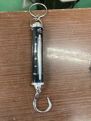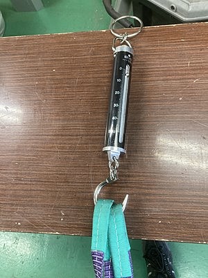 校正用のばね式手秤のフックの部分がL字型で荷重を掛けるとフックからロープ等が外れる恐れがあり、危険な為、フックの形状を変更し、ロープ等が外れないようにしていただきました。