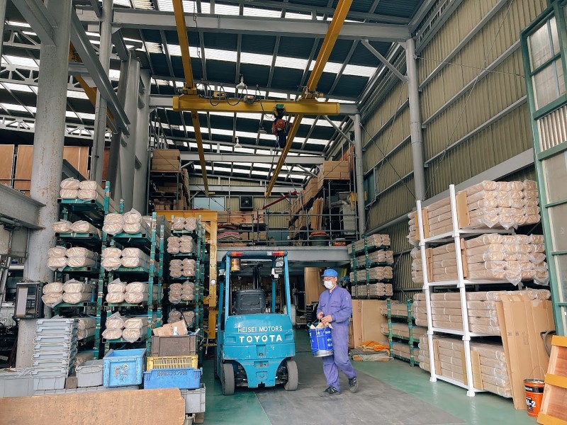 今までよりもスペースの効率よく大量のバンパーを保管できるようになりました。