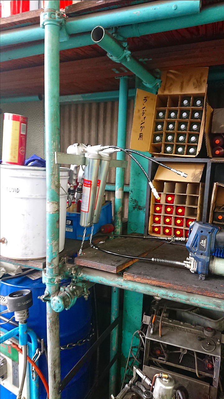 BPW用のスラックスアジャスタ専用グリスとランディング専用グリスが必要になった為、グリスガン、設置場所作りました。