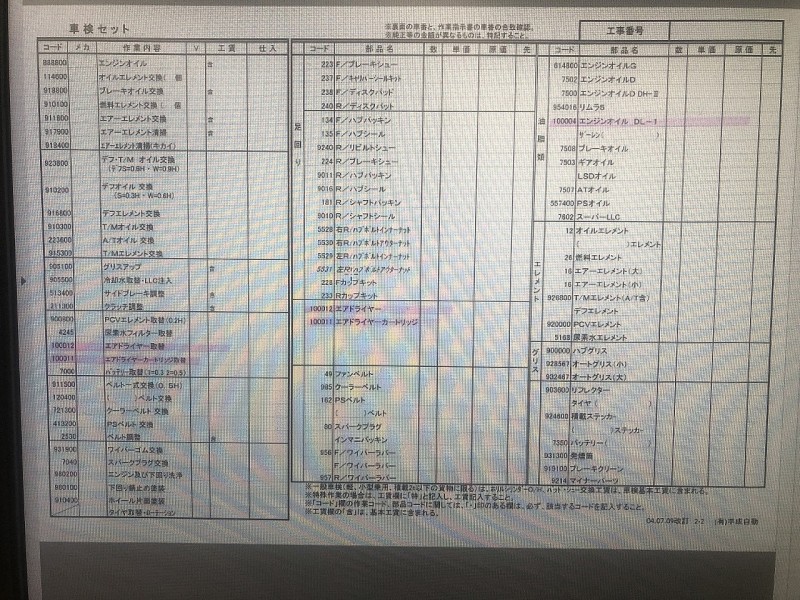 LLCブースター注入を消して、作業頻度の多いエアドライヤー取替、エアドライヤーカートリッジ取替の作業コード及び部品コードを作ってもらい、指示書に反映してもらいました。