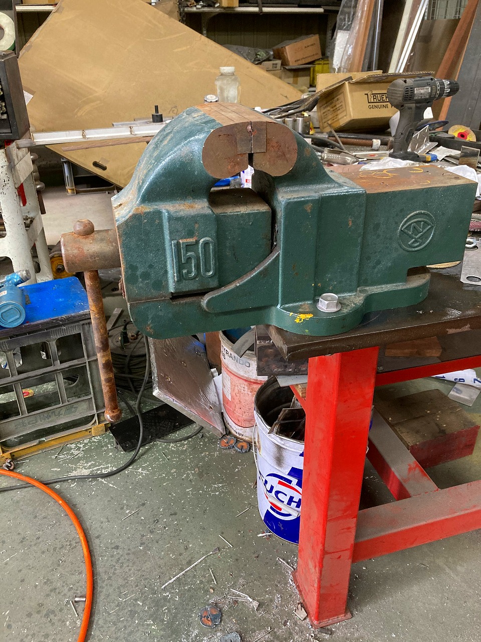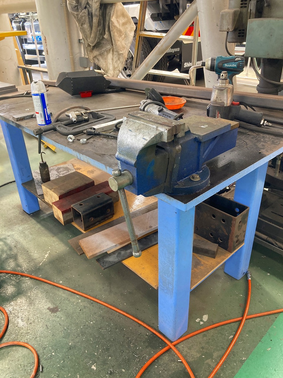 新しく購入したものは鈑金班がよく使用するところへ設置し、鈑金班にあったバイスをバンパー製品ラインへ移設していただきました。