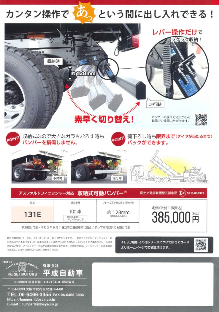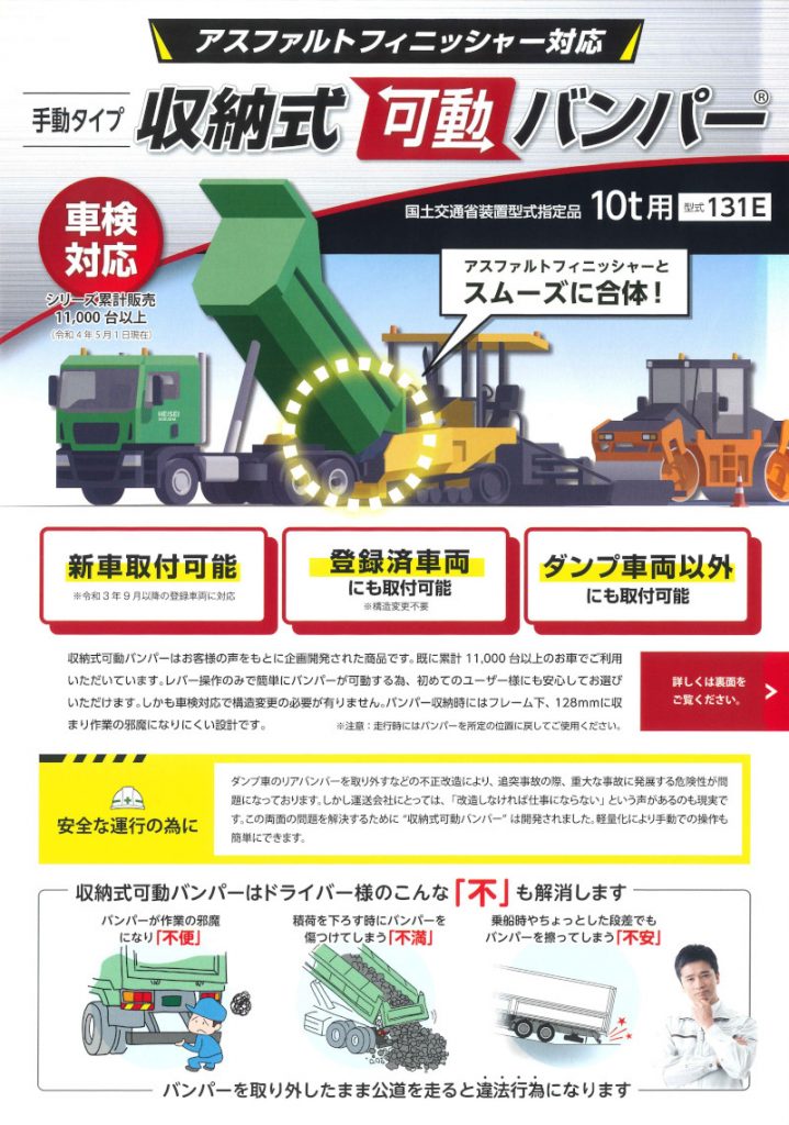 新たな基準に対応する収納式可動バンパーの完成に伴い特約店やディーラー、その他業界団体向けの