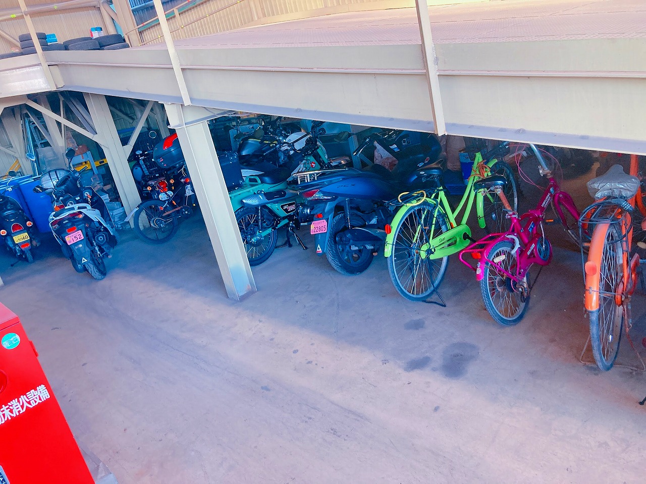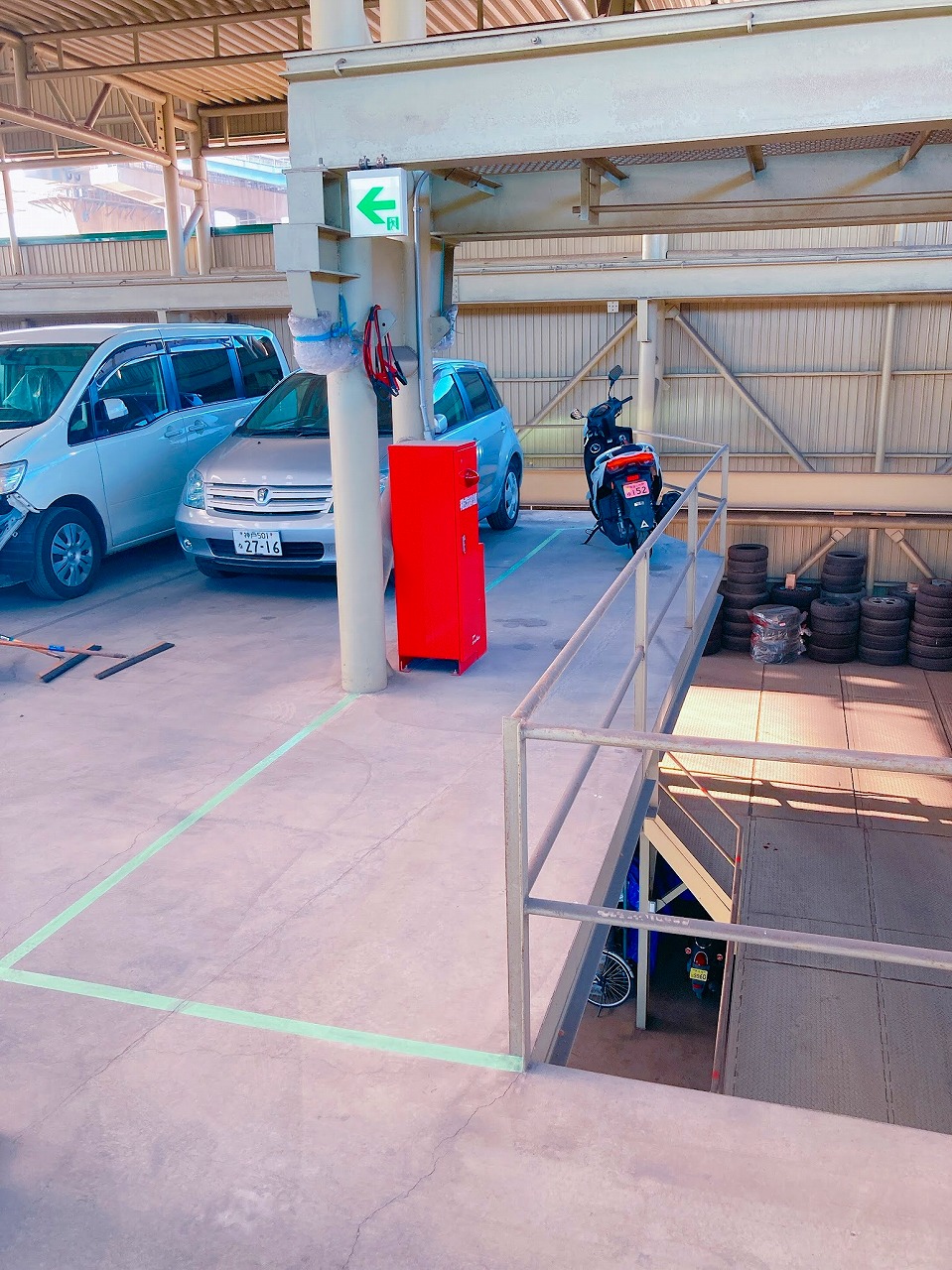 バンパー班のバイク3台を2階に停めます。