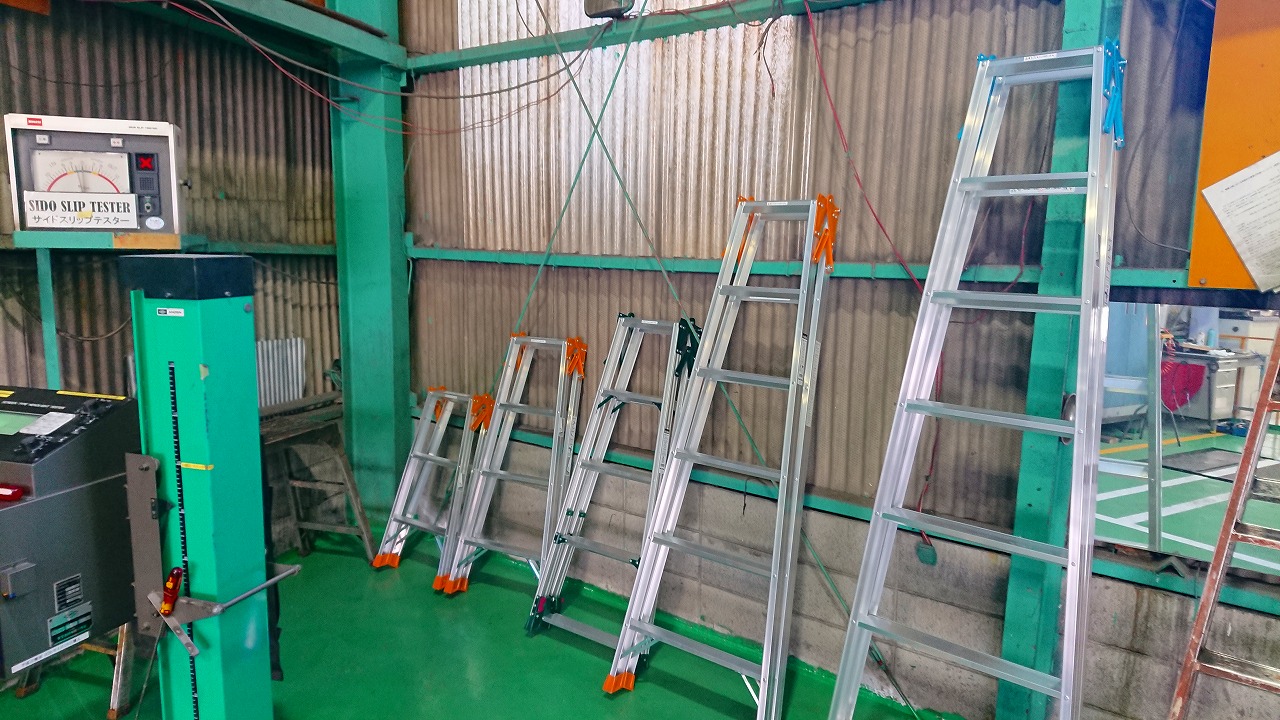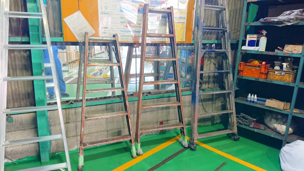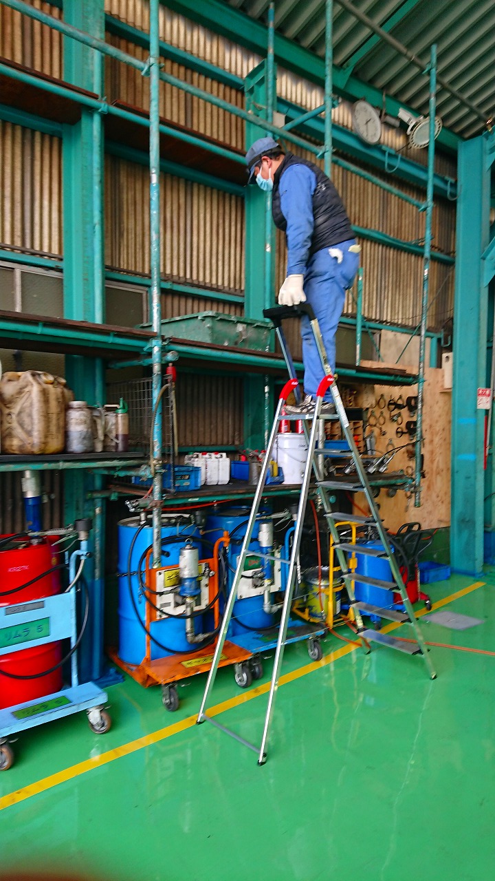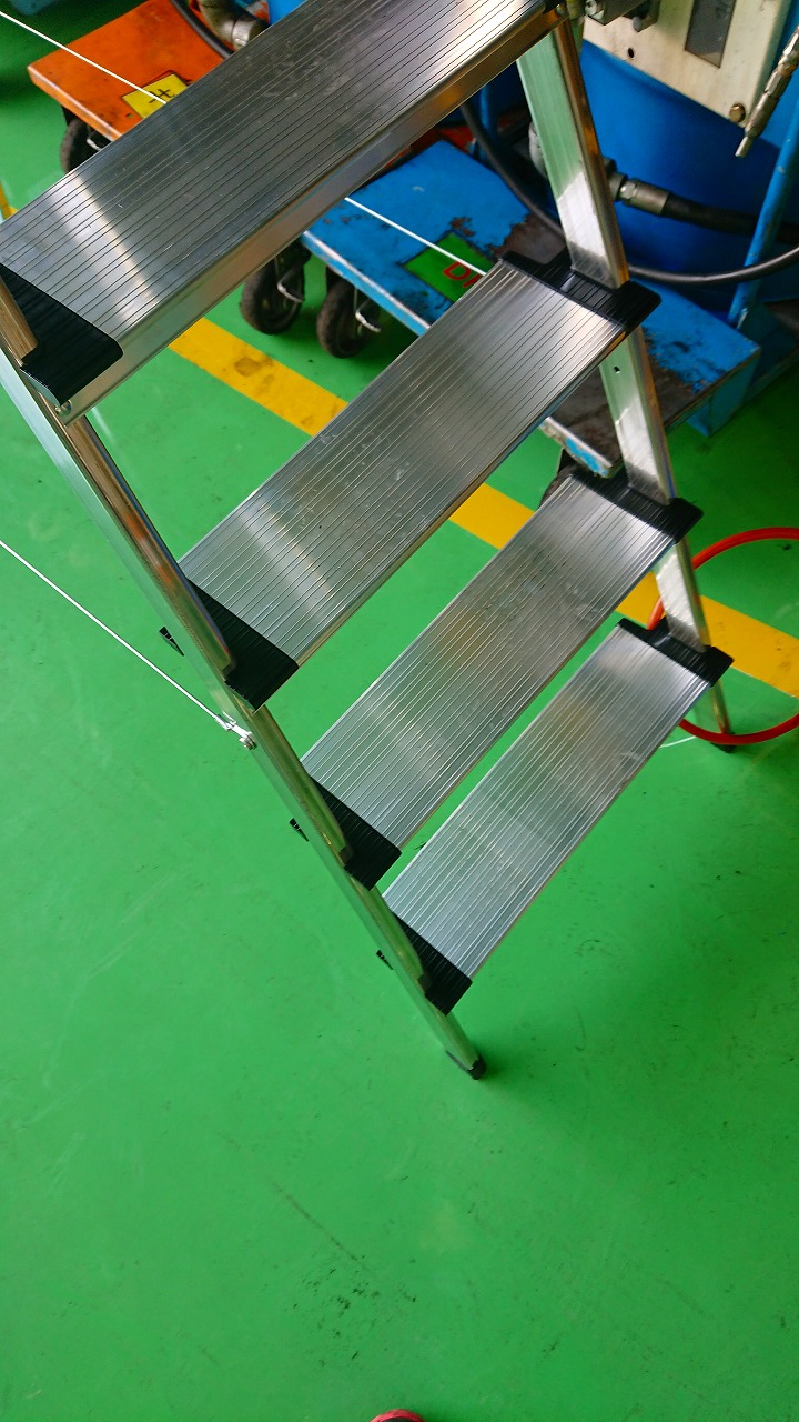 工場の床が綺麗になり床が傷つかない新しい脚立を購入して貰いました。
