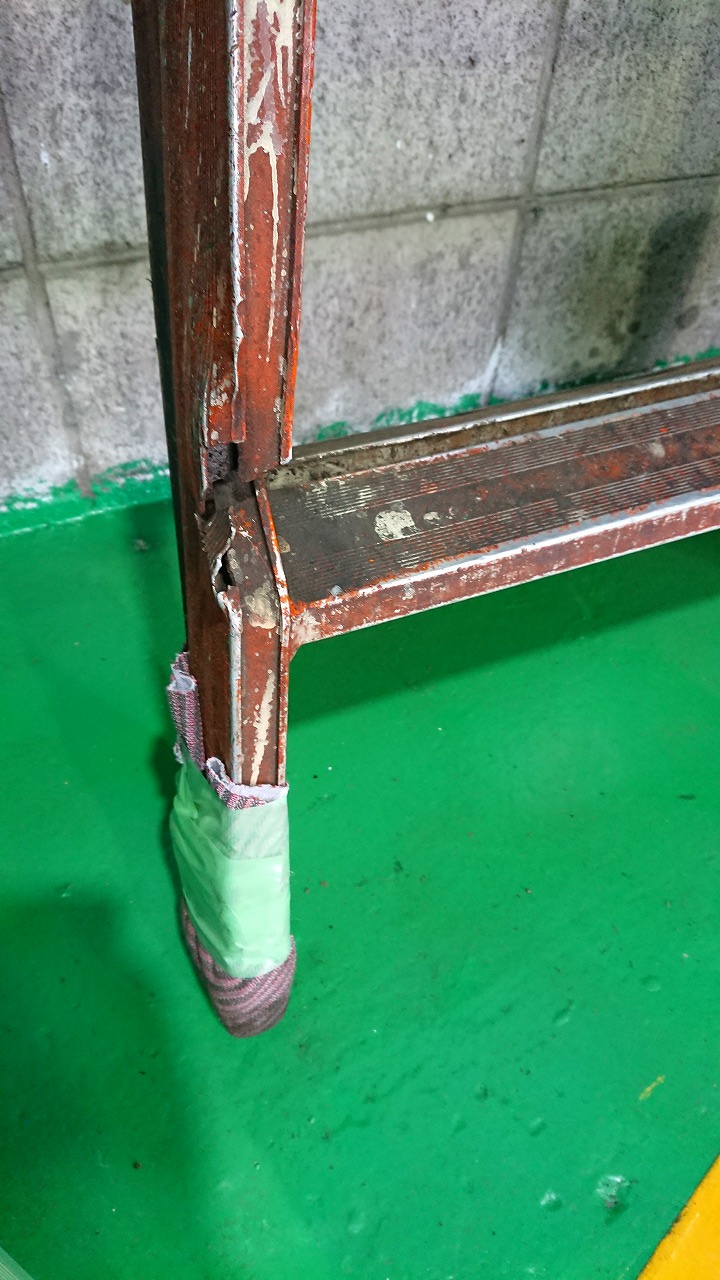 かなり傷んでいた脚立、危険な状態でした。