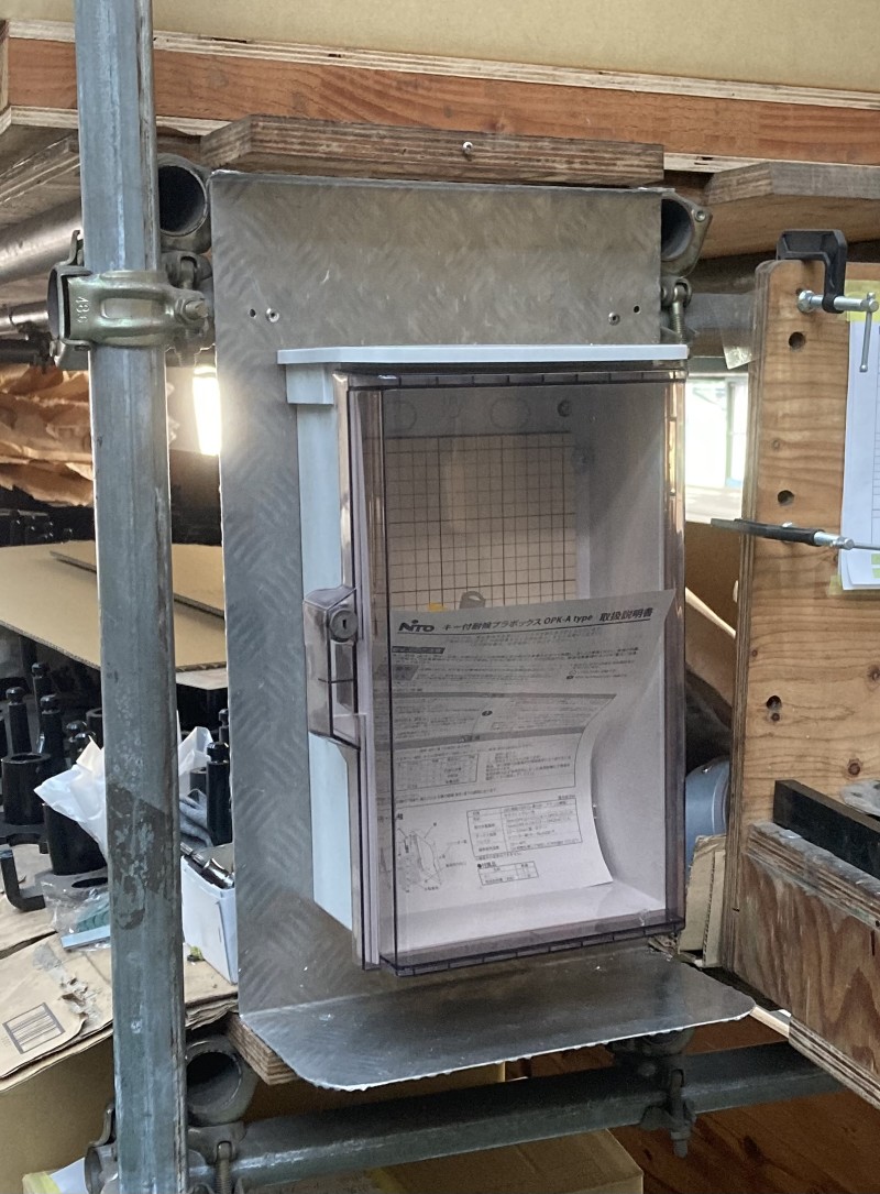 バンパー班2階作業場に電話機を設置する為のボックスを原田さんとファドリさんに付けていただきました。