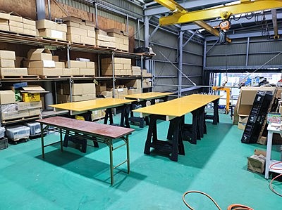 作業フロア改善に伴いスペースを有効活用するべく、作業テーブルを作成しました。