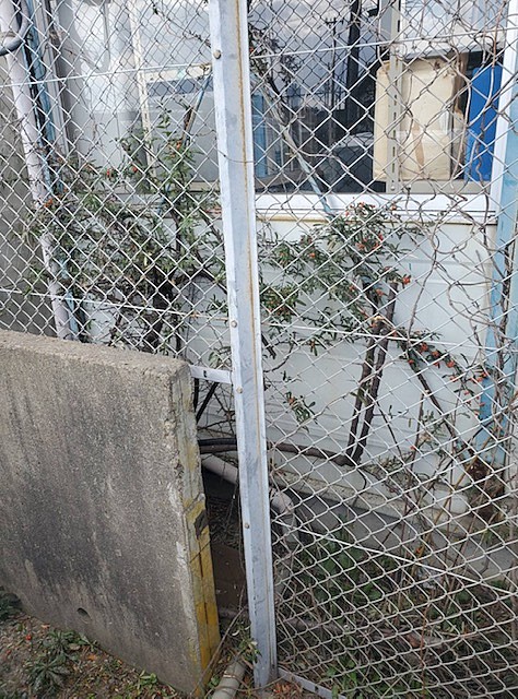社員駐車場(道路側)のフェンス内から大きく伸びていた枝を伐採していただきました。