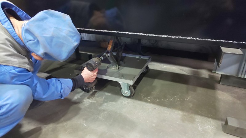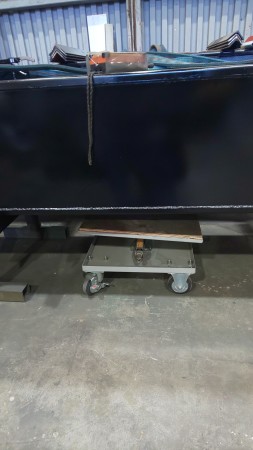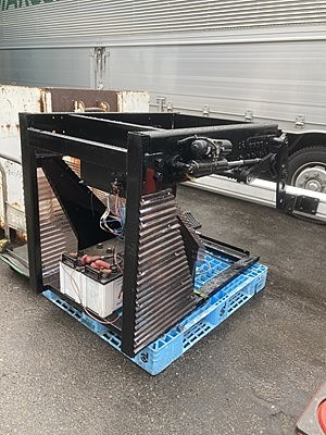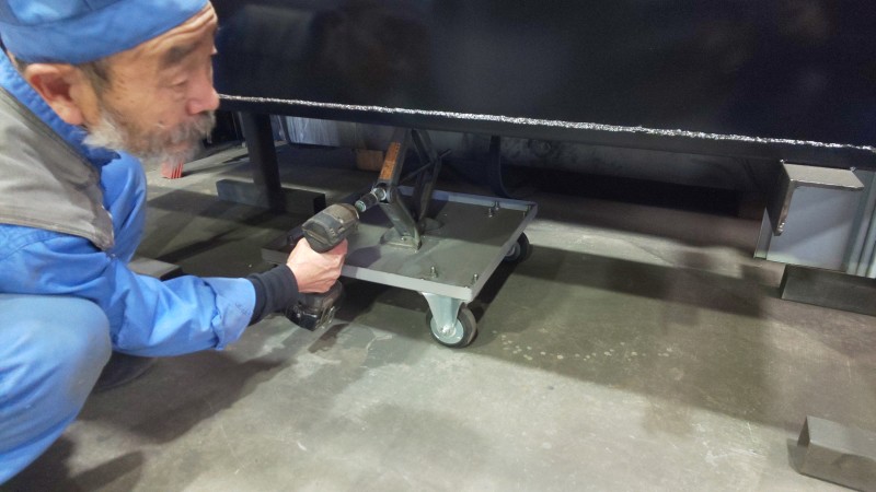 麻植班長が冨士工興業さんの台車の後ろの道具箱を制作しました、取り付けるのに移動ができないので専用の道具箱台車を制作して取り付けました。
