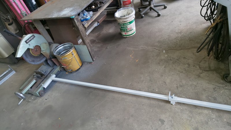 麻植班長がもう一台のカッターにも寸法切りの特殊工具を制作しました。