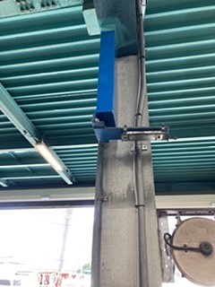 小型1番リフト入れ替えに伴いエアコードリールを移設します。工場の梁からブラケットを伸ばしリール本体を取り付ける予定です。