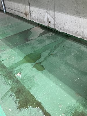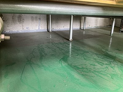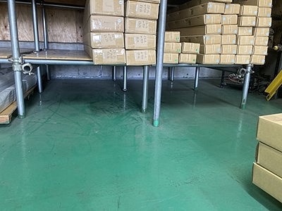 製品ライン1階奥、バンパーを保存している床部分で水漏れが発生しましたので
