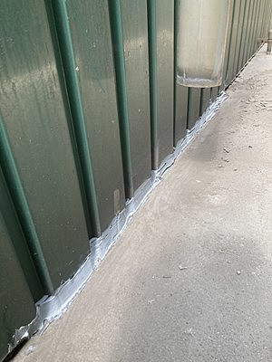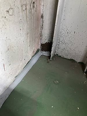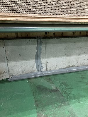製品ライン1階の段ボール保管場所で水漏れが発生していましたので内側と外側の両方を補修し、水が入らないようにしていただきました。