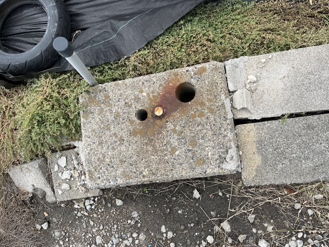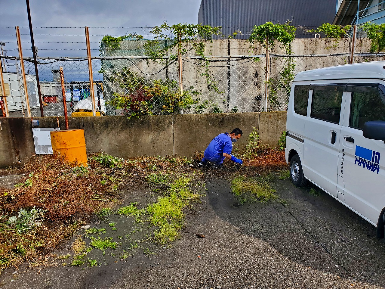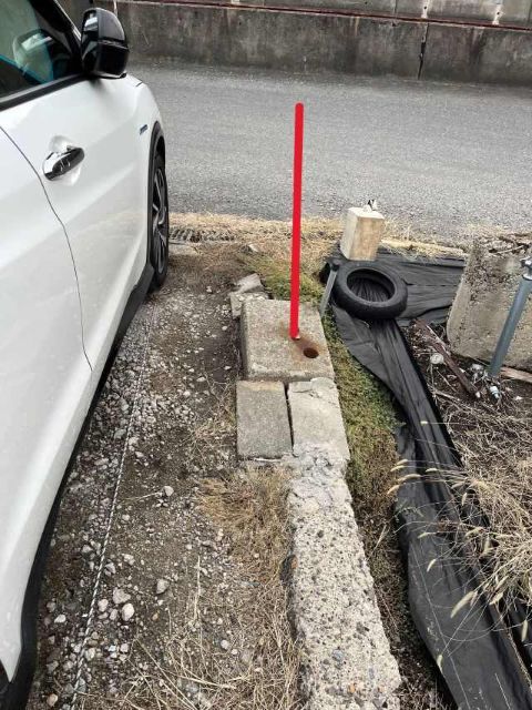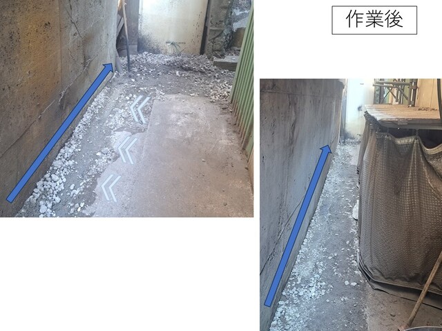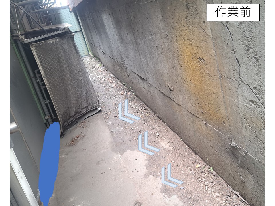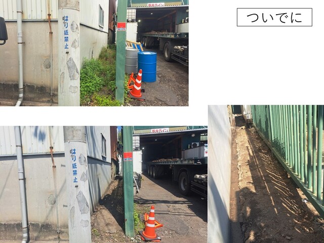地面に傾斜をつけ溝を掘ることで雨を工場側に入れない作戦です。