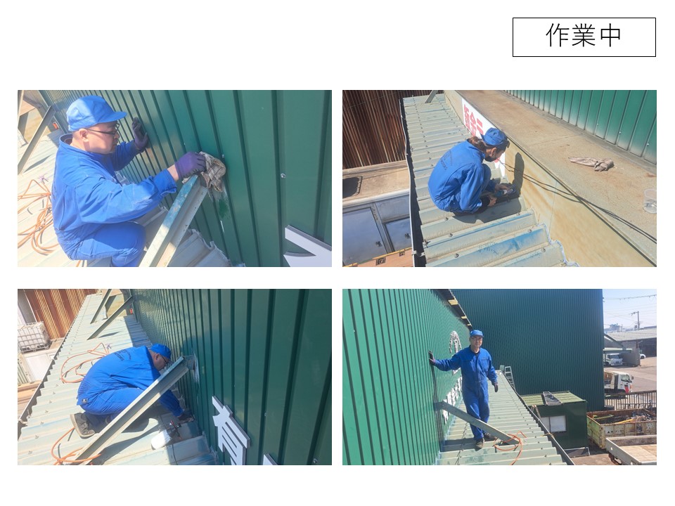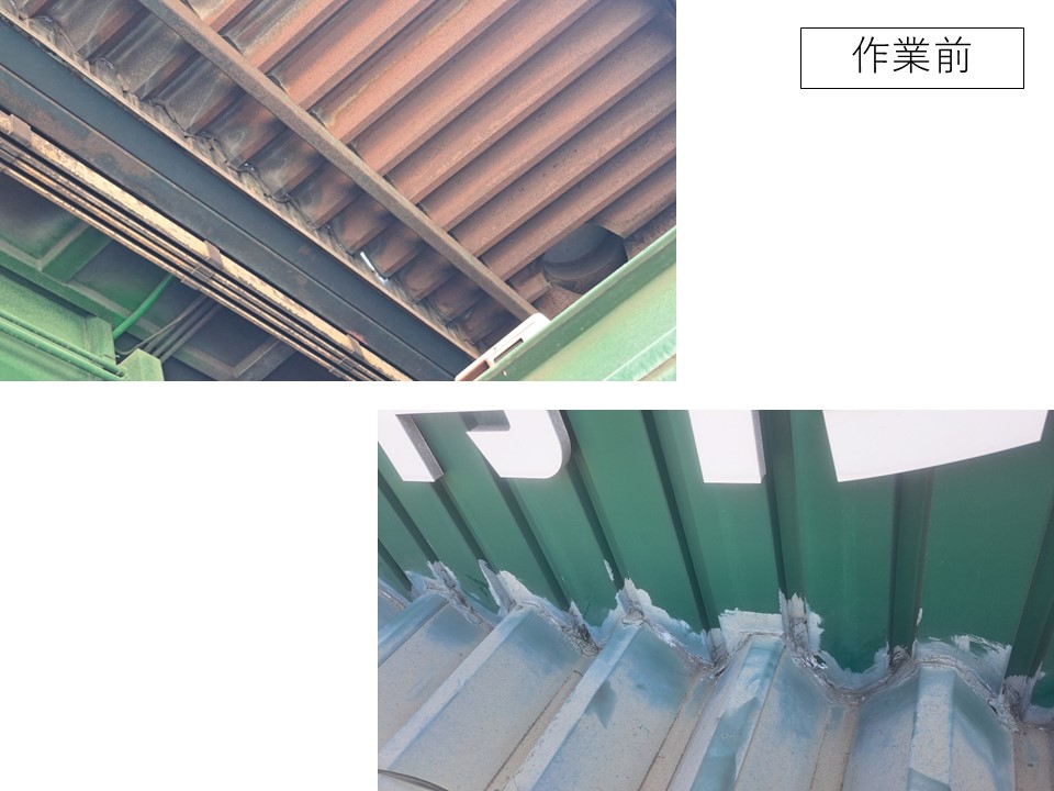 工場の雨漏り修理 自社の人達で作業をして解決。