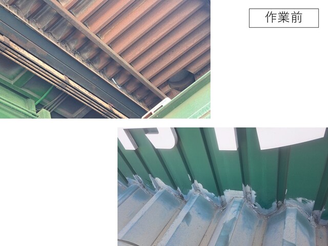 隙間から雨が工場内に入るという事でシーラントを塗りました。