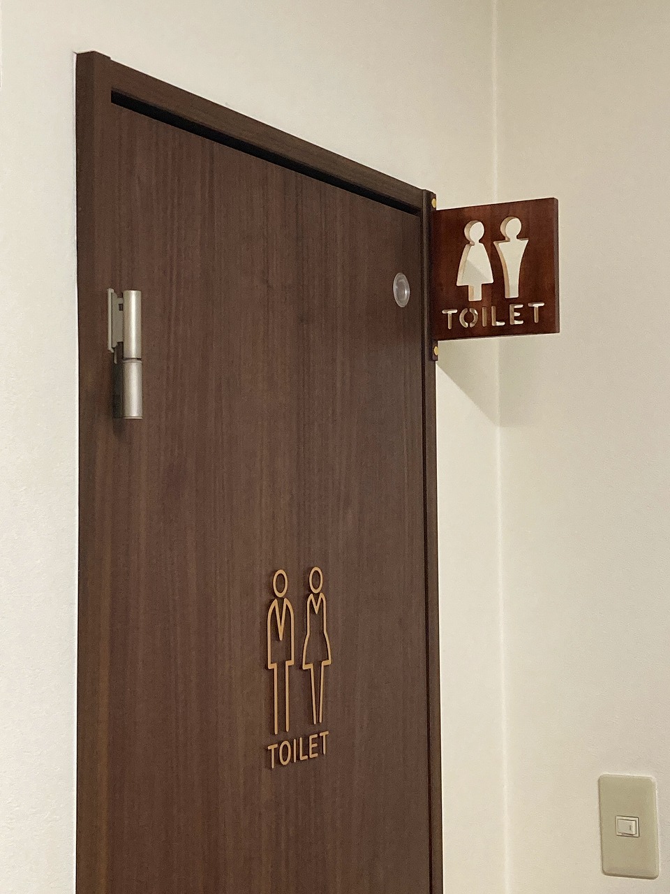 お客様がトイレの場所を見つけやすいように看板を買いました。