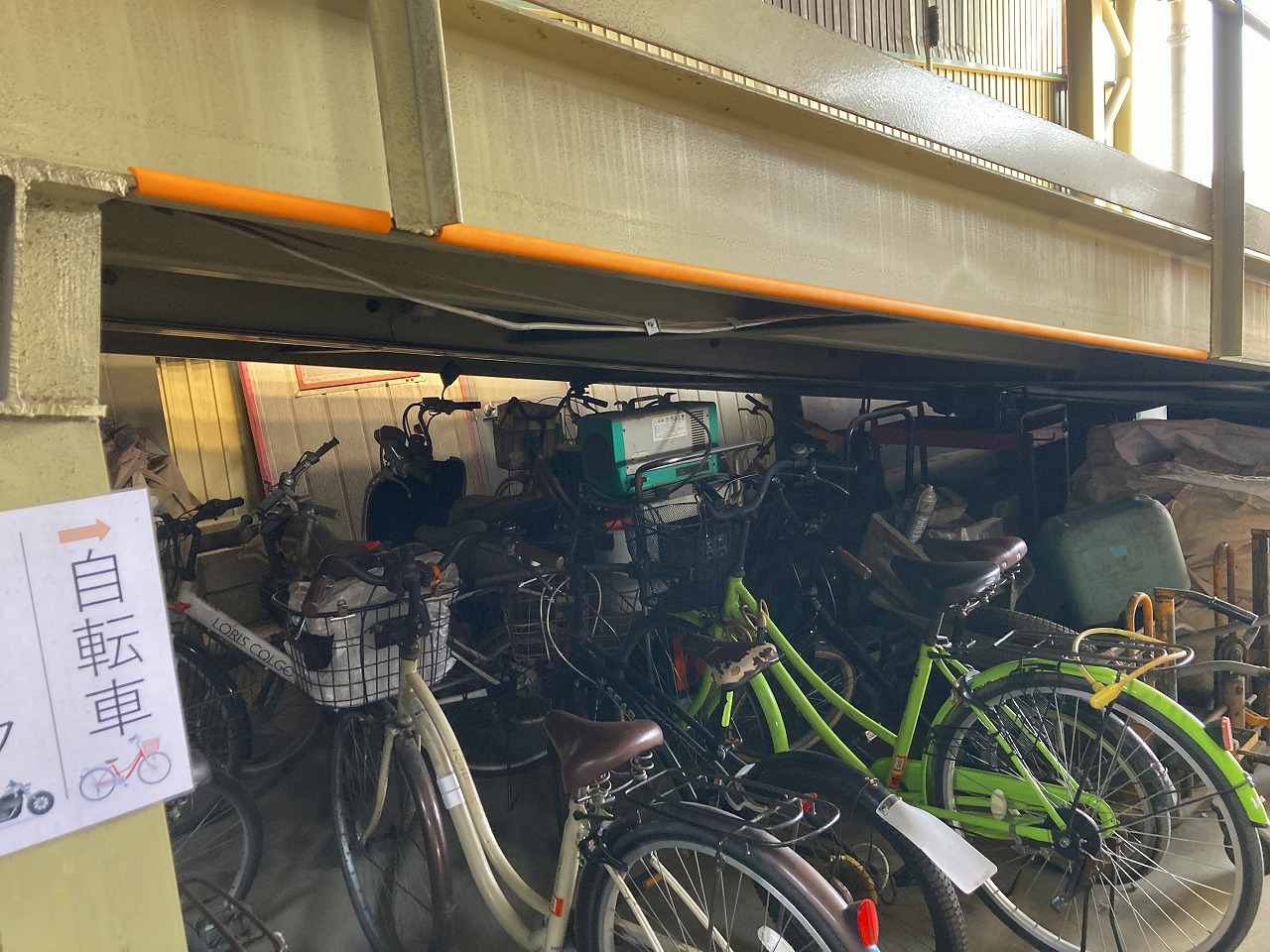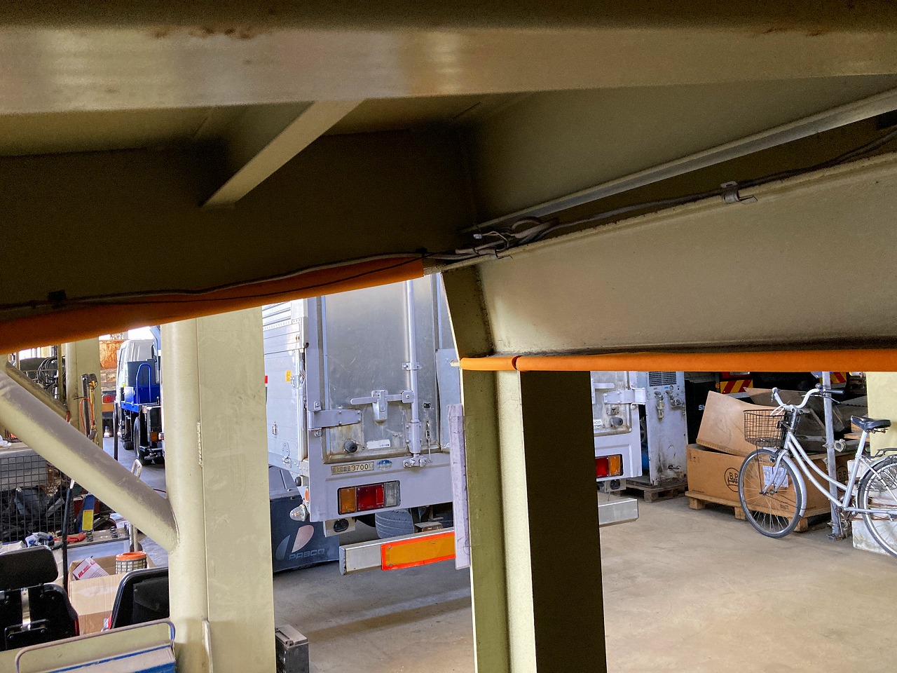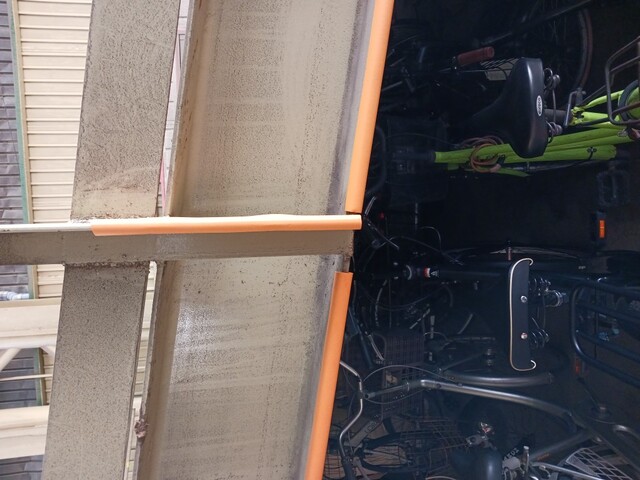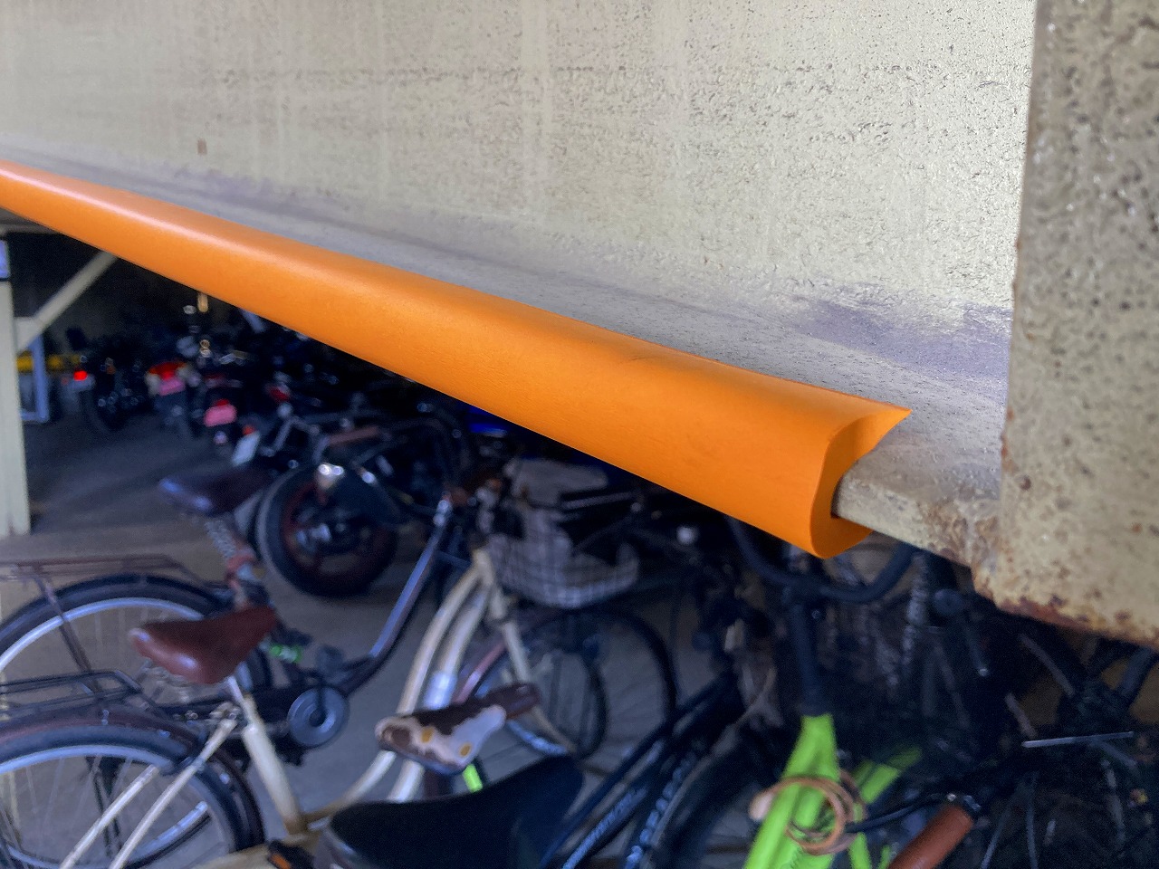 社員用の自転車置き場がスロープ下にあるため天井が低く、気を付けないと頭を打つ可能性が高いので、まさかの時でも衝撃を和らげるため、クッション材を取り付けました。