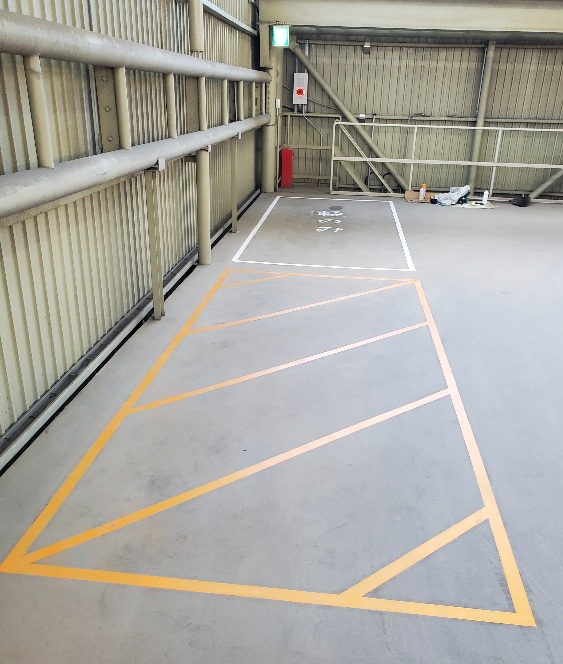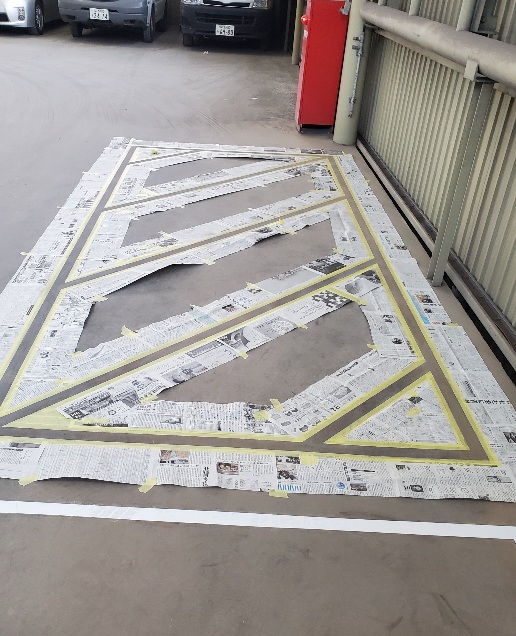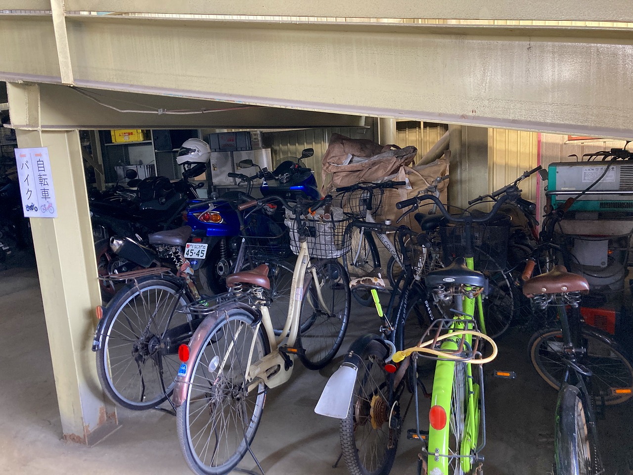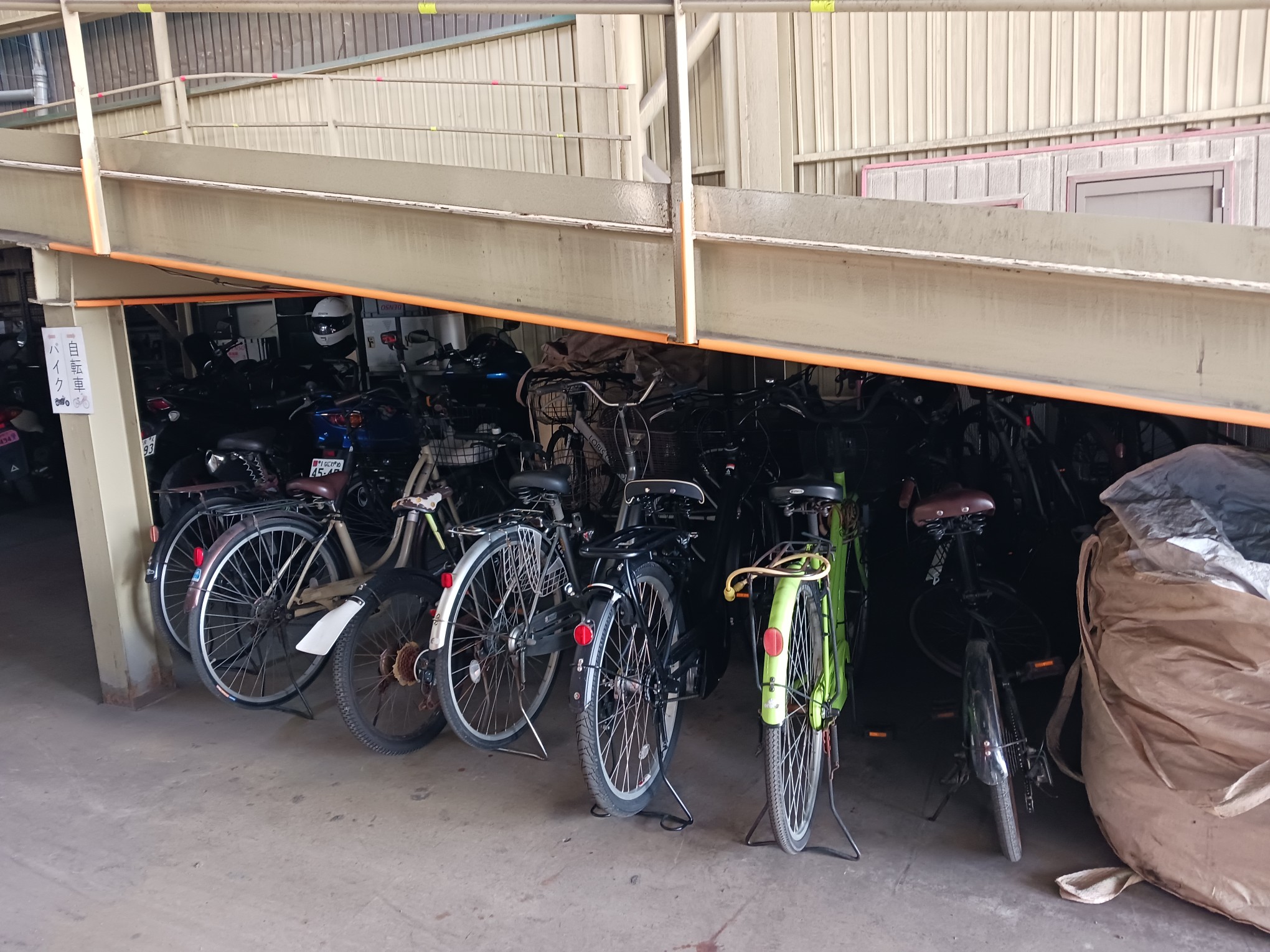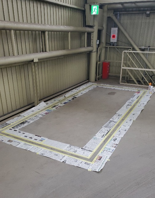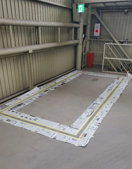社員用の自転車置き場がスロープ下にあるため天井が低く、気を付けないと頭を打つ可能性が高いので、まさかの時でも衝撃を和らげるため、クッション材を取り付けました。