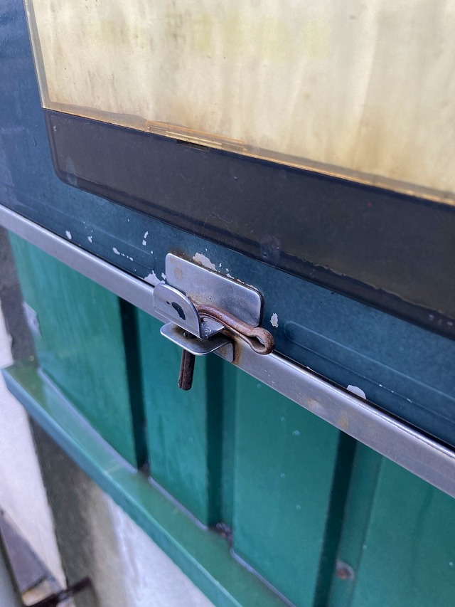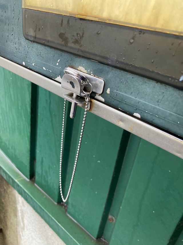 以前から郵便受けの蓋を割りピンで留めているのを見てモヤモヤとしていたのですが、これなら使えるかもとチェーン付きのロックピンを買って取り付けてみました。
