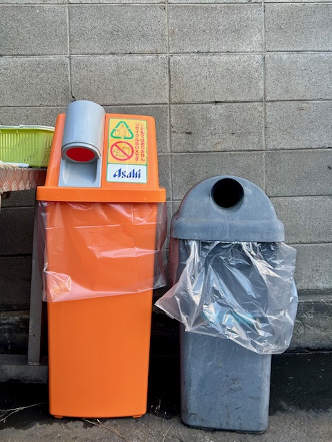 日に焼けて、割れてボロボロになっていた自販機横のごみ箱。