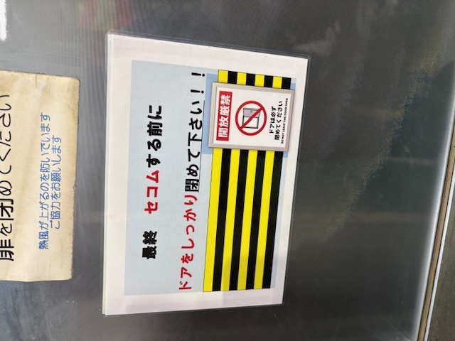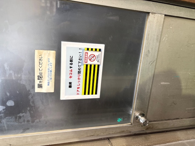 階段から小型ラインへの出入り口のドアにセコムのセンサーが