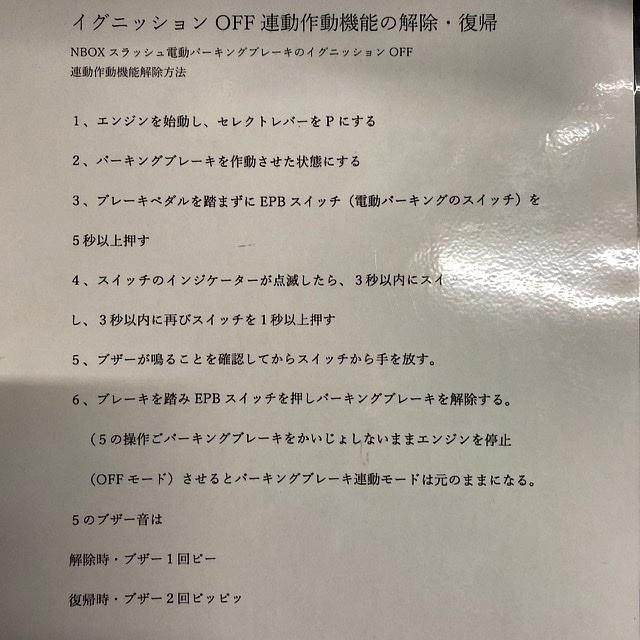 ホンダ 電動パーキングブレーキ解除方法