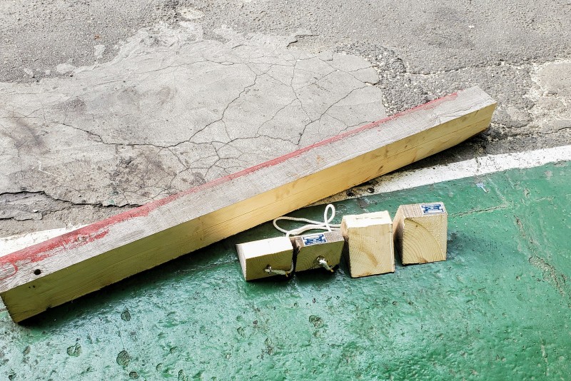 現場にサービスカーを置く際に、歯止めがないと怒られることがあるので製作しました。