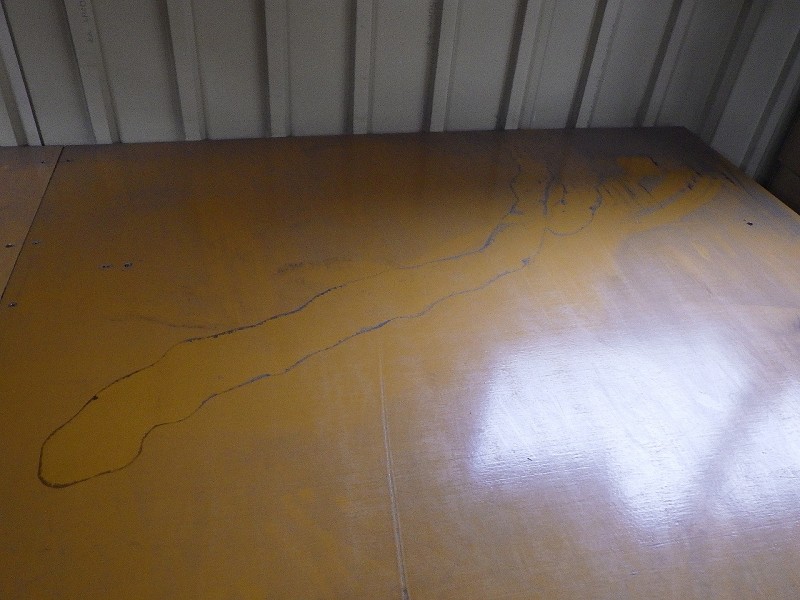 製品ライン3階の段ボール置き場ですが、雨の後に棚が濡れていることに気付き、