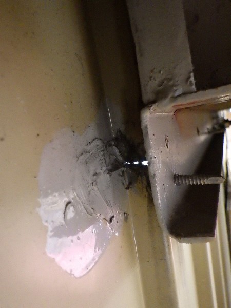 よく見てみるとアルミサッシで隠れた部分に隙間があり外の光が漏れていました。