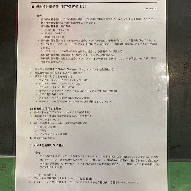 MAZDA SKYACTIVーD 車検時燃料噴射量学習について