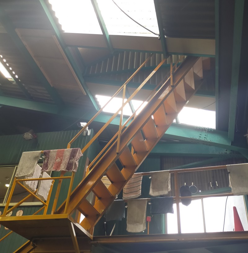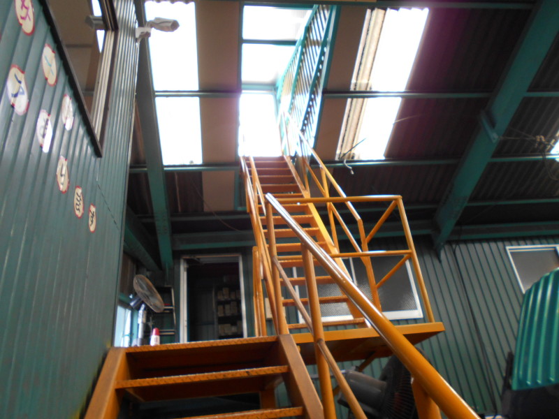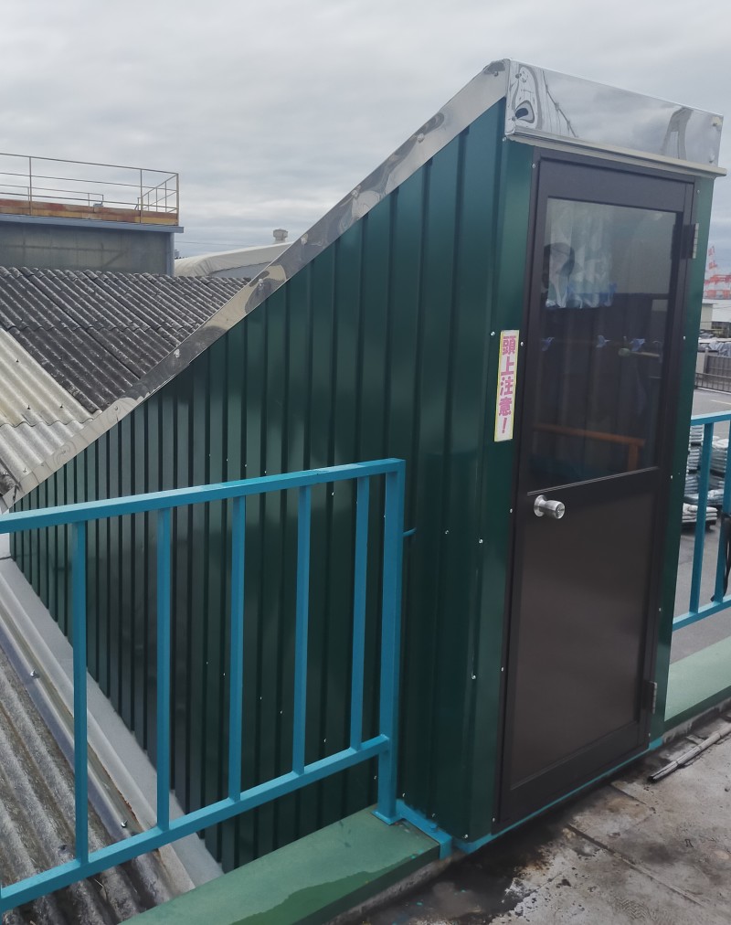 大型ライン奥のお客様待合室から2階事務所の屋上に階段製作!