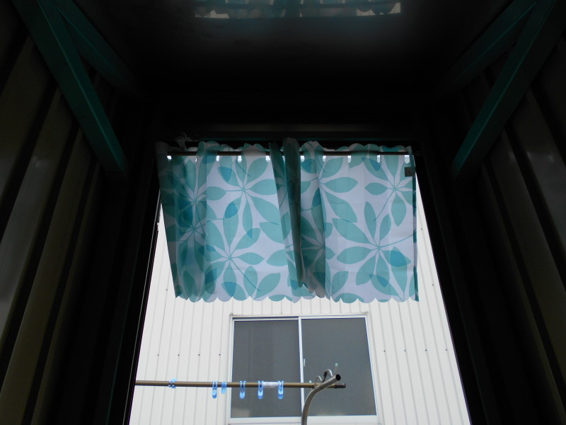 次に「出入口」。これはカフェカーテンをつけて、あえてくぐる姿勢を作る事によって回避できました。