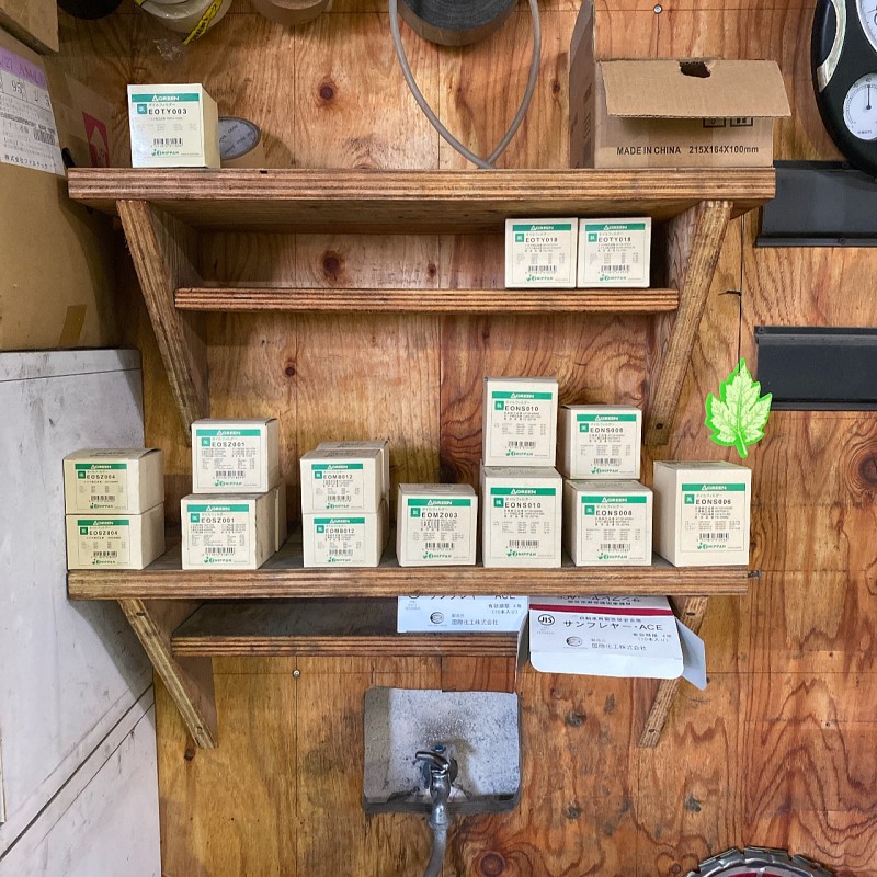 工具置き場を移動したことにより、棚に空きが出来たので、寺田さんとの話し合いの結果、阪和様のオイルエレメントを置きました。これにより急遽のオイル交換、エレメント交換で2Fまで走らずに部品を取ることができます。アクティオ様など3か月点検など一気に入庫が増えた際は効果絶大です。