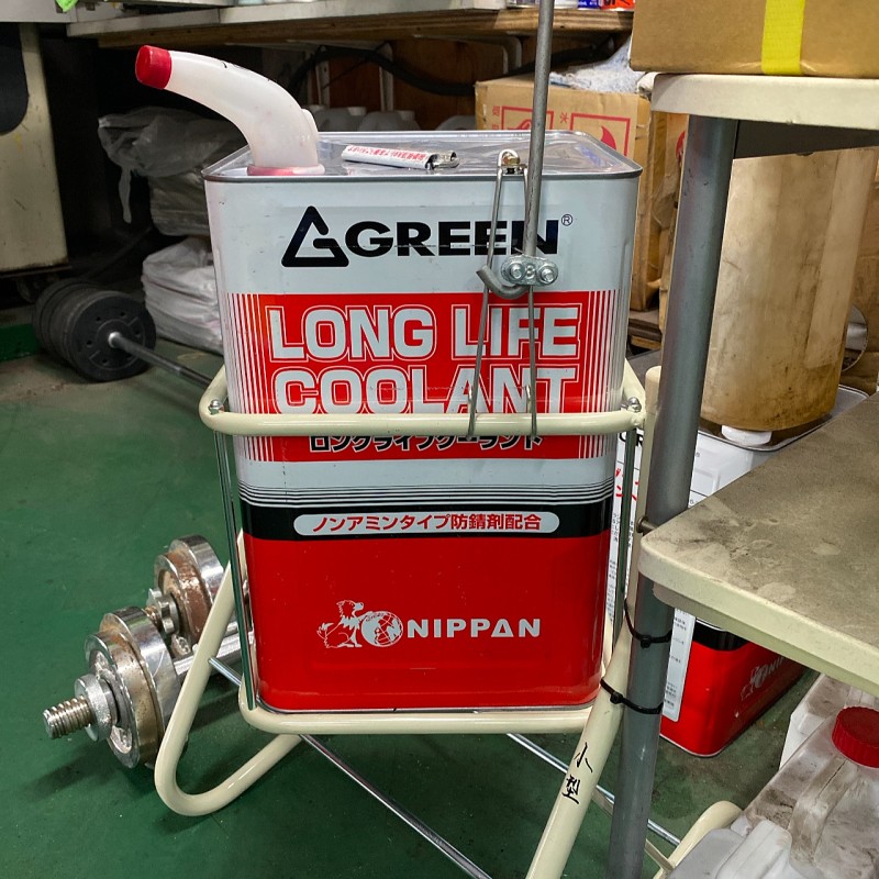 乗用車で赤色のLLCを入れる際、こぼれる、重いと言った障害をなくしてくれるスタンドです。入れる所にプラのジョロを取り付けこぼれにくくする他、レバーを取り付けることにより、軽く動くようになっています。