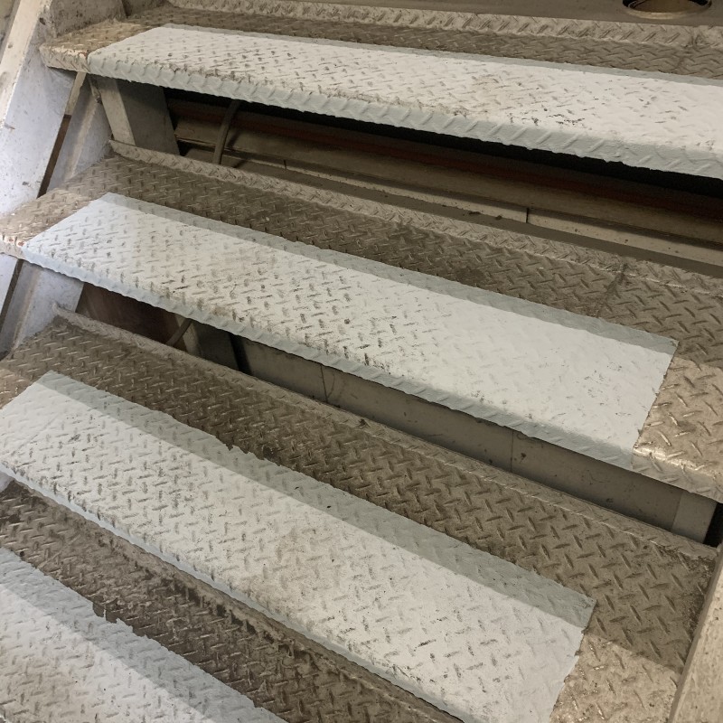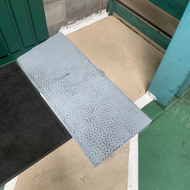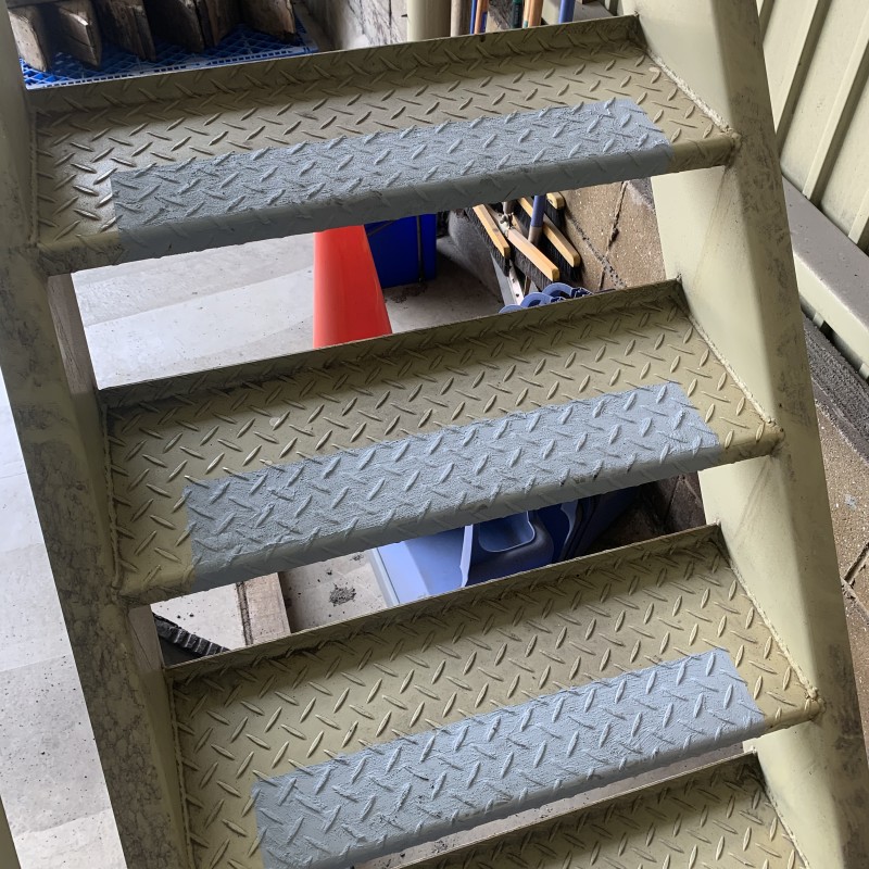 二回に上がる階段と現場事務所前のスロープ板(小型ライン側)と駐車ラインの階段に滑り止めを塗りました!これで滑って転ぶ心配はなさそうです。ギャグもすべらんようにならんかなぁ笑